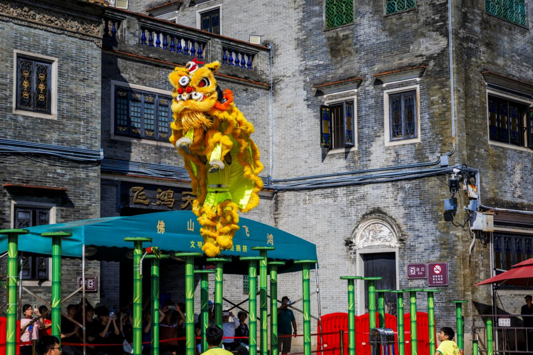 随后,代表们来到佛山祖庙,恰逢一场精彩的舞狮表演在此上演。铿锵的锣鼓声中,醒狮腾挪跳跃,将岭南文化的独特魅力展现得淋漓尽致。作为南派狮舞的代表,佛山醒狮不仅是珍贵的非物质文化遗产,更是深植于这座城市血脉中的文化符号。